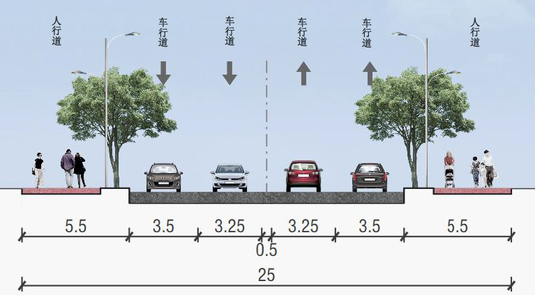 该项目位于眉山市岷东新区,道路长度614米,宽度25米。